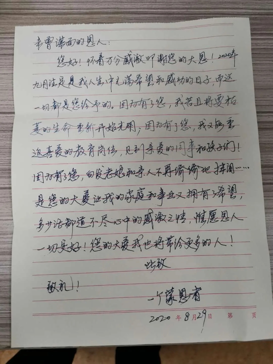 “通過這封飽含深情的信,我得知我的‘有緣人’,是一名老師。在我準(zhǔn)備捐獻(xiàn)之前,他還一直堅(jiān)守在工作崗位上。”杜咪動(dòng)情地說,“我是一名退伍軍人,在部隊(duì)中,國家教會(huì)了我要以人民的利益為中心,要以人民的安全為使命;在盛世中,董事長教導(dǎo)了我,是社會(huì)上的人民給予了我們一切,我們需要常懷感恩之心,要以大愛之心承載社會(huì)責(zé)任。為此我有義務(wù),也有責(zé)任回報(bào)社會(huì)。”